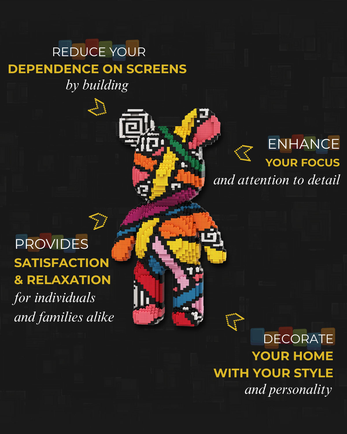 Our brick teddy bears offer a soothing escape, piece by piece.